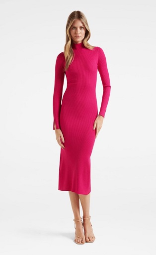Knit dresses are always a fall-fashion favourite and this season we are embracing the trend with our sleek and modish Heidi Rib Column Knit Dress. The fitted silhouette and ribbed knit fabrication exude both comfort and style. The high neckline and long fitted sleeves with split cuffs add a touch of elegance to this vibrant pink piece. This midi-length wonder is a perfect match with the Camila Strappy Stiletto, be it for a brunch date with your girlfriends or a weekend outing.