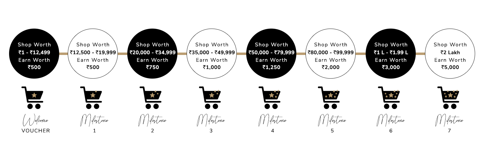 Make every purchase even more rewarding by unlocking milestones and earning every step of the way.