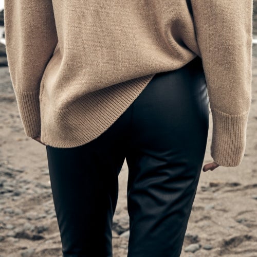 Only wash vegan leather garments if necessary and never iron them. Instead, store them on a hanger to avoid creasing.